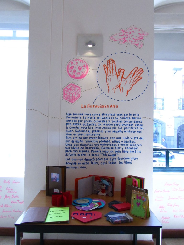 Exhibitions of the books that were written and bound by 150 participants across the city were then presented in outdoor events at the Quito public libraries network. A final exhibition with the material developed during all of the workshops was presented at the Metropolitan Cultural Center of Quito. Participants of this event were able to create a collective book about local jargon.